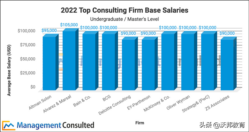 咨询企业起薪同样达到六位数。多数知名管理咨询公司的应届生入职底薪就达到了10万美元。