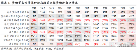 3、海关口径的进出口差额本身不直接对应跨境资金的进出。
